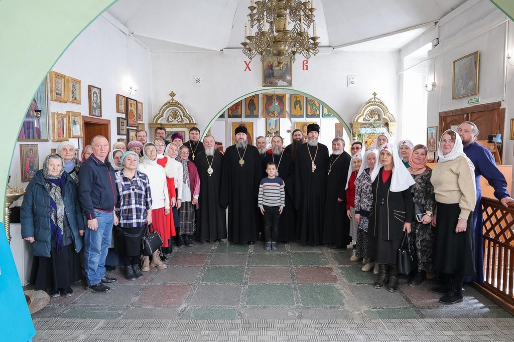 За Божественной литургией Высокопреосвященнейшему владыке сослужили епископ Карасукский и Ордынский Варнава, епископ Искитимский и Черепановский Леонид, епископ Каинский и Барабинской Владимир, секретарь Новосибирского Епархиального управления протоиерей Георгий Патрин, секретарь Искитимской епархии иеромонах Иоанн (Кутырев), клирики Искитимской епархии иеромонах Евгений (Пономарев), иерей Иаков Шумбасов, иерей Алексий Мангушев, секретарь Каинский епархии иерей Павел Говоров, заведующий канцелярией Новосибирского Епархиального управления протодиакон Александр Егоров, личный секретарь Управляющего епархией диакон Михаил Дутка, диакон Иоанн Перепечин.