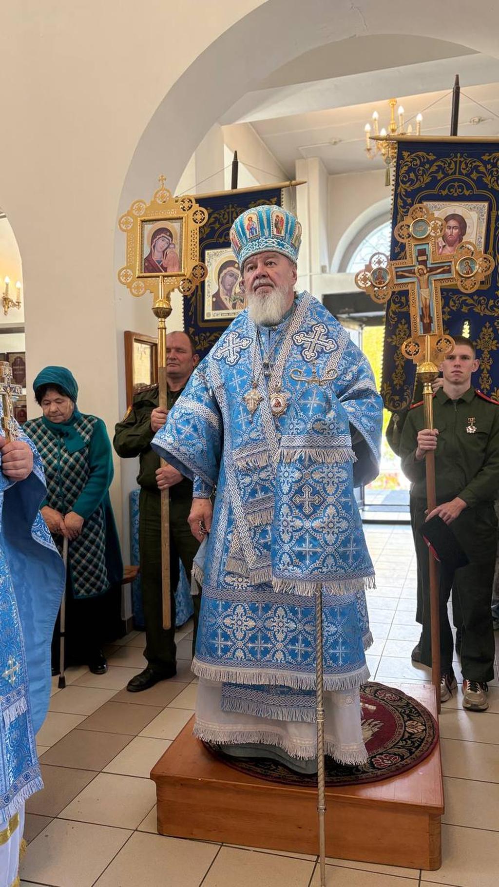 Его Преосвященству сослужили: настоятель храма протоиерей Сергий Лепешев; диакон Димитрий Рыженков.
