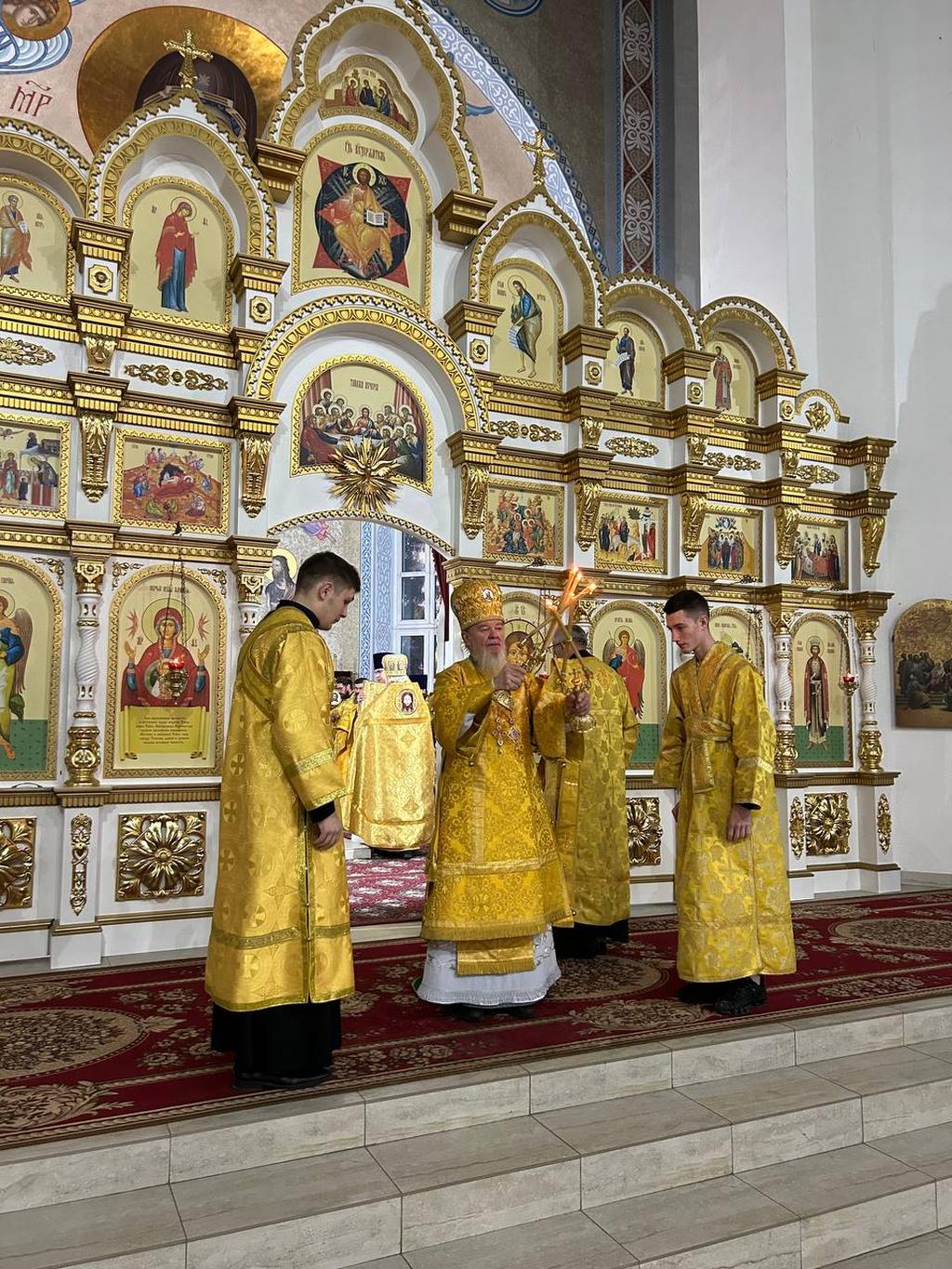 Епископ Владимир совершил Божественную Литургию в сослужении духовенства Каинской епархии в Спасском кафедральном соборе города Куйбышева