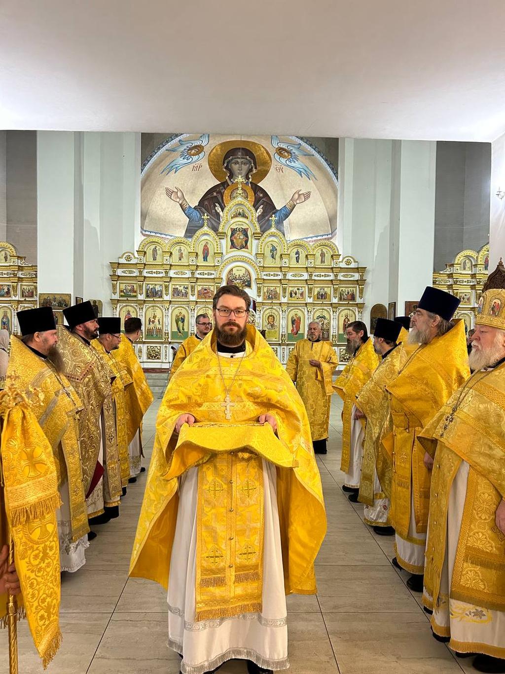 За богослужением пел сводный хор под управлением регента Спасского кафедрального собора Ксении Клинг.