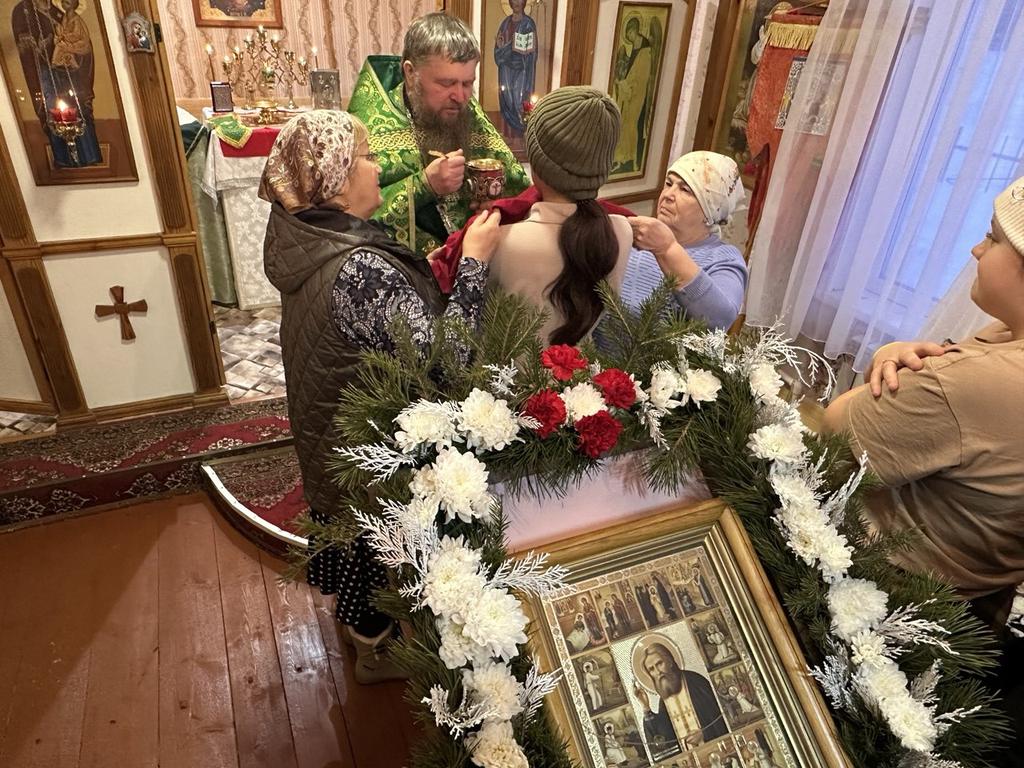 В нашей епархии единственный храм, посвящённый великому батюшке Серафиму, как с любовью его называют многие верные, находится в селе Отреченское Чановского района. В этот день, несмотря на более чем тридцатиградусный мороз с ветром прихожане пришли в свой любимый храм, чтобы помолиться на Литургии. Настоятель храма протоиерей Андрей Вирясов провел божественную литургию за которой причастилось более 30 человек, в том числе дети разного возраста. На литургии пели многим известные певчие дуэта «Отчий дом» Александра и Сергий из г. Куйбышев. По окончании литургии был проведён Крестный ход. Завершилось торжество традиционным чаепитием в доме старосты общины, где певчие также порадовали своим творчеством собравшихся прихожан..