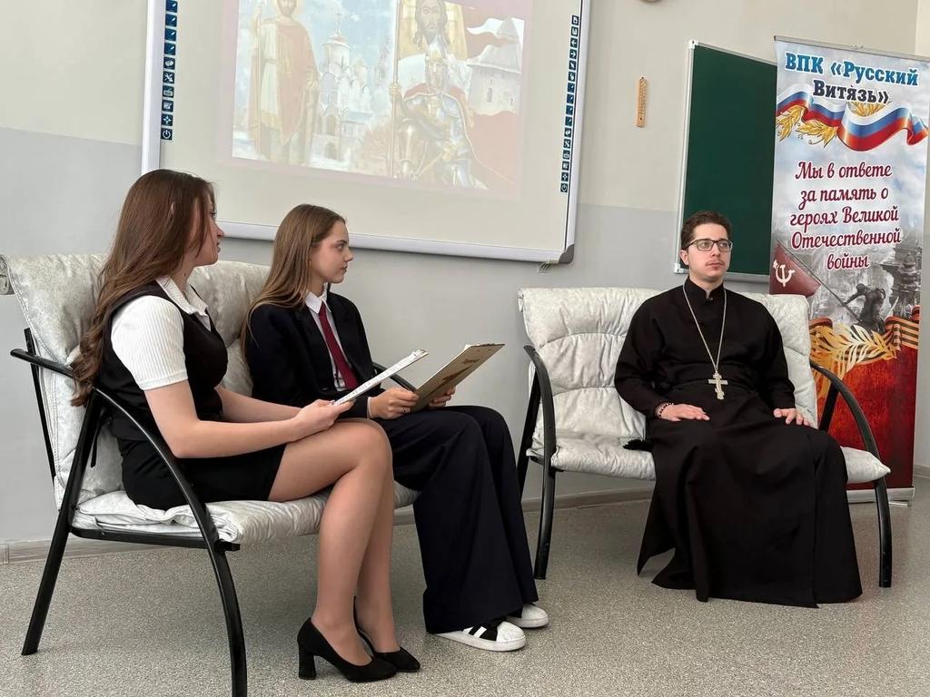 19 февраля 2026 года иерей Макарий Государкин посетил школу 93 города Барабинска где принял участие в встрече диалоге "Щит и Вера" : разговор о том кто такой настоящий защитник отечества .