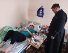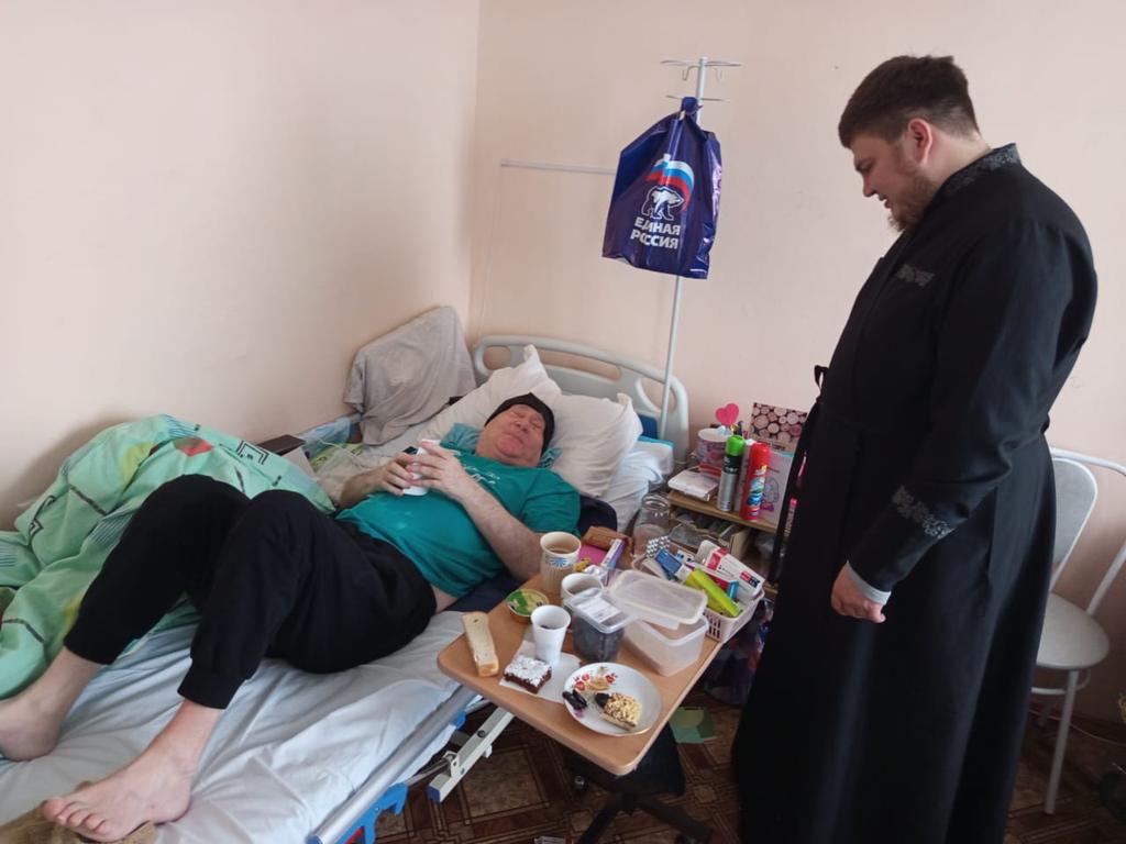 Отец Павел поздравил пациентов с прошедшим праздником. А усилиями прихожан были приготовлены сладкие подарки.