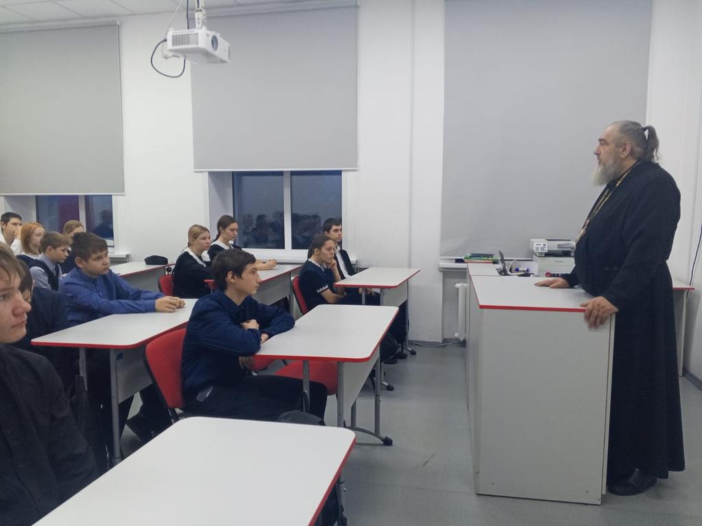 Священники пообщались с учащимися на духовно значимые темы касающиеся нравственности, традиционных ценностей и необходимости веры в Бога в современном мире.