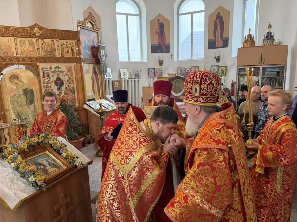 На малом входе владыка Владимир удостоил секретаря Каинской епархии иерея Павла Говорова права ношения наперсного креста.