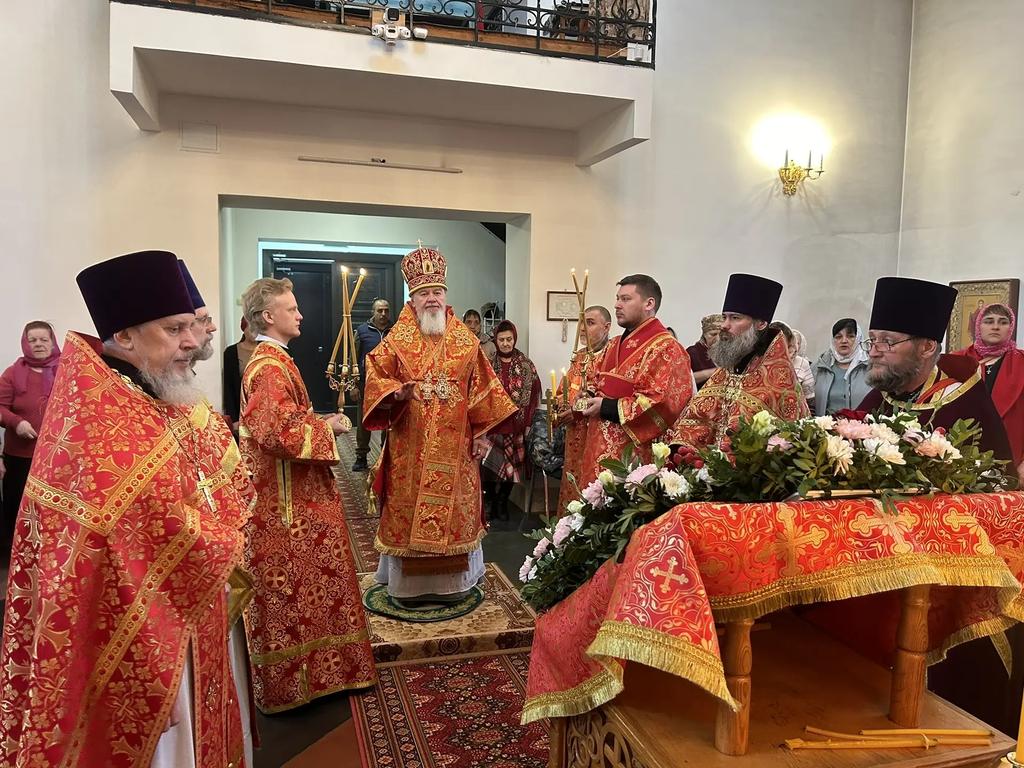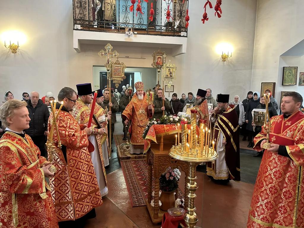 Его Преосвященству сослужили: протоиерей Тимофей Морев, иерей Артемий Килин, иерей Михаил Рыжинков, иерей Павел Говоров ,иерей Константин Голубей, дьякон Дмитрий Рыжинков